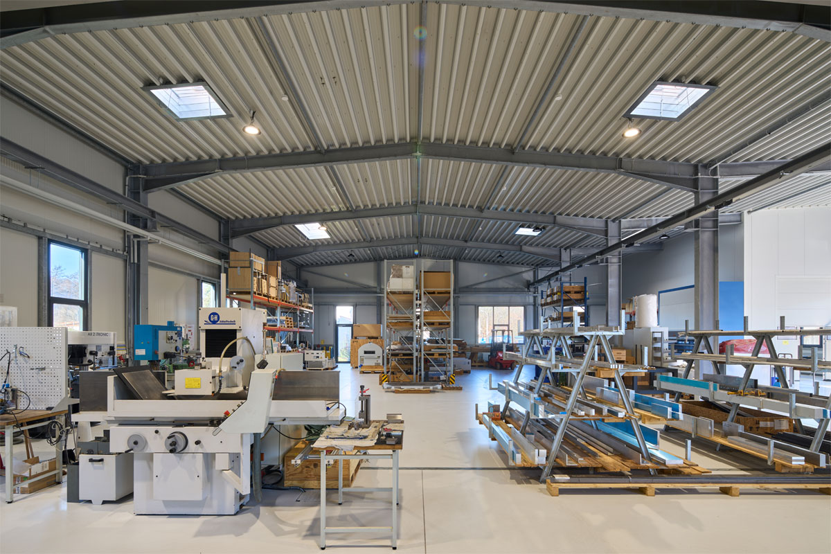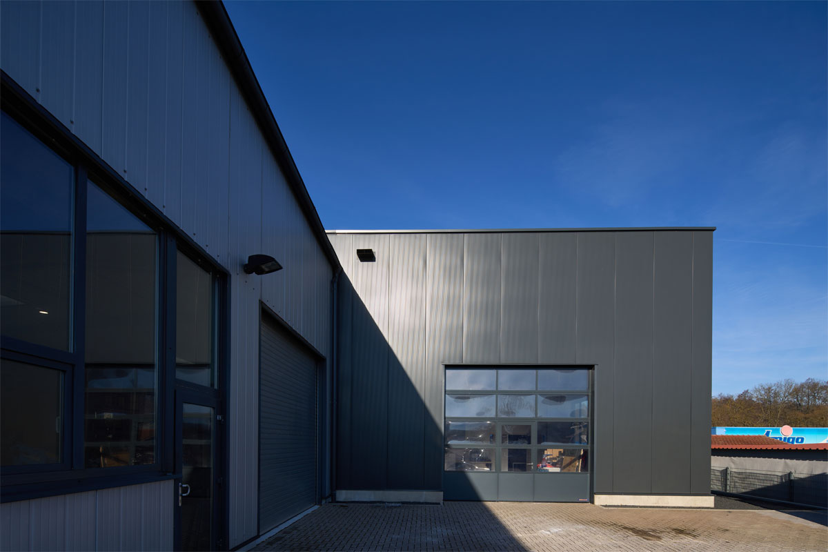 So entstand ein Bauwerk, das die bestehende Halle nicht nur funktional erweitert, sondern durch seine präzise und moderne Gestaltung auch ein klares architektonisches Statement setzt – ein Ort, an dem Produktion und Innovation Hand in Hand gehen.
